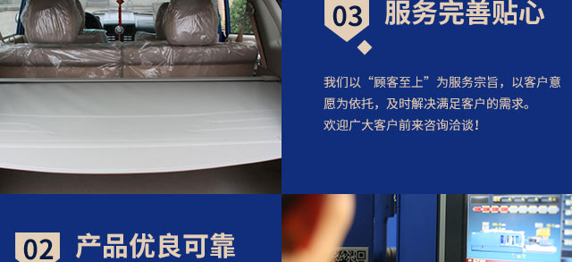 遮物簾以帆布和超纖皮革兩種材質(zhì)為主,拉桿以磨砂鋁合金提升汽車檔次,減小噪聲;端頭卡扣附有隔音絨布,減小異響;無用打孔,在對應(yīng)預(yù)留孔位上卡扣即可,安裝簡單,需要時(shí)候拉開,不用時(shí)候合上即可!